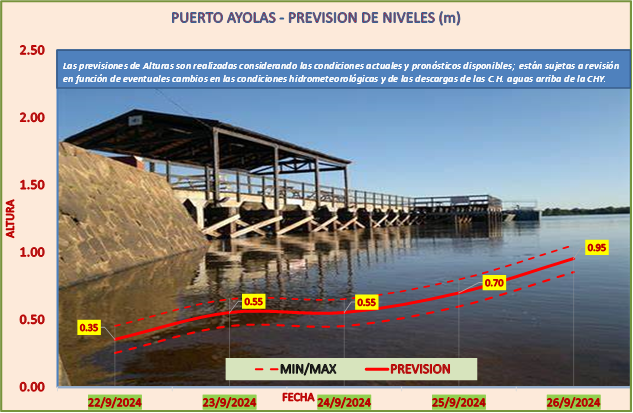 Las previsiones de Alturas son realizadas considerando las condiciones actuales y pronósticos disponibles y están sujetas a revisión en función de eventuales cambios en las condiciones hidrometeorológicas y de las descargas de las C.H. aguas arriba de la CHY.