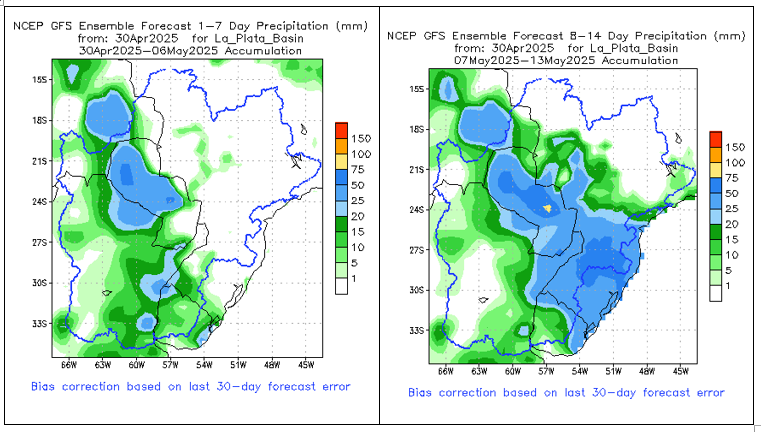 El pronóstico Hidrometeorológico del Centro Climático de referencia indica una tendencia semanal de poca significancia hidrológica en la cuenca de interés para la CHY con dispersión geográfica según sea la fuente consultada. (Ver gráfico Nro. 1).