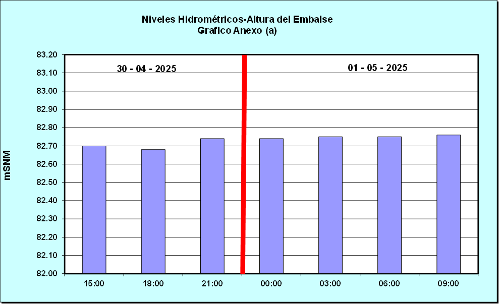 Nivel de Ayer (06:00 hs) = 82.80 mSNM Nivel de Hoy (06:00 hs) = 82.75 mSNM