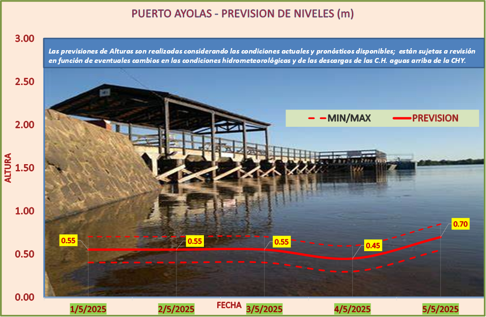 Las previsiones de Alturas son realizadas considerando las condiciones actuales y pronósticos disponibles y están sujetas a revisión en función de eventuales cambios en las condiciones hidrometeorológicas y de las descargas de las C.H. aguas arriba de la CHY.