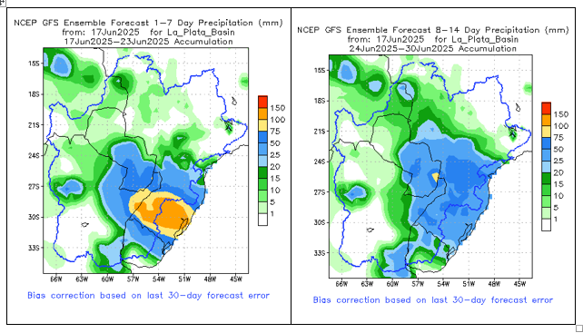 El pronóstico Hidrometeorológico del Centro Climático de referencia indica una tendencia semanal de significancia hidrológica en la cuenca de interés para la CHY con dispersión geográfica según sea la fuente consultada. (Ver gráfico Nro. 1).