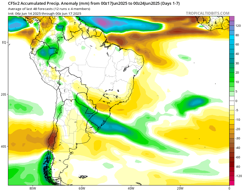 El fenómeno de El Niño-Oscilación del Sur (ENOS) es neutro. El último valor de Niño 3.4 para la semana que finalizó el 18 de mayo fue de -0,01 °C. Los valores neutros de ENOS se encuentran entre -0,8 °C y +0,8 °C.