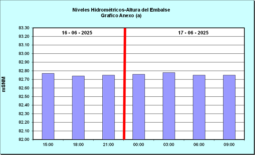 Nivel de Ayer (06:00 hs) = 82.85 mSNM Nivel de Hoy (06:00 hs) = 82.75 mSNM