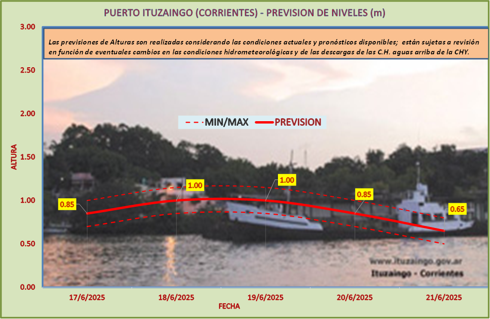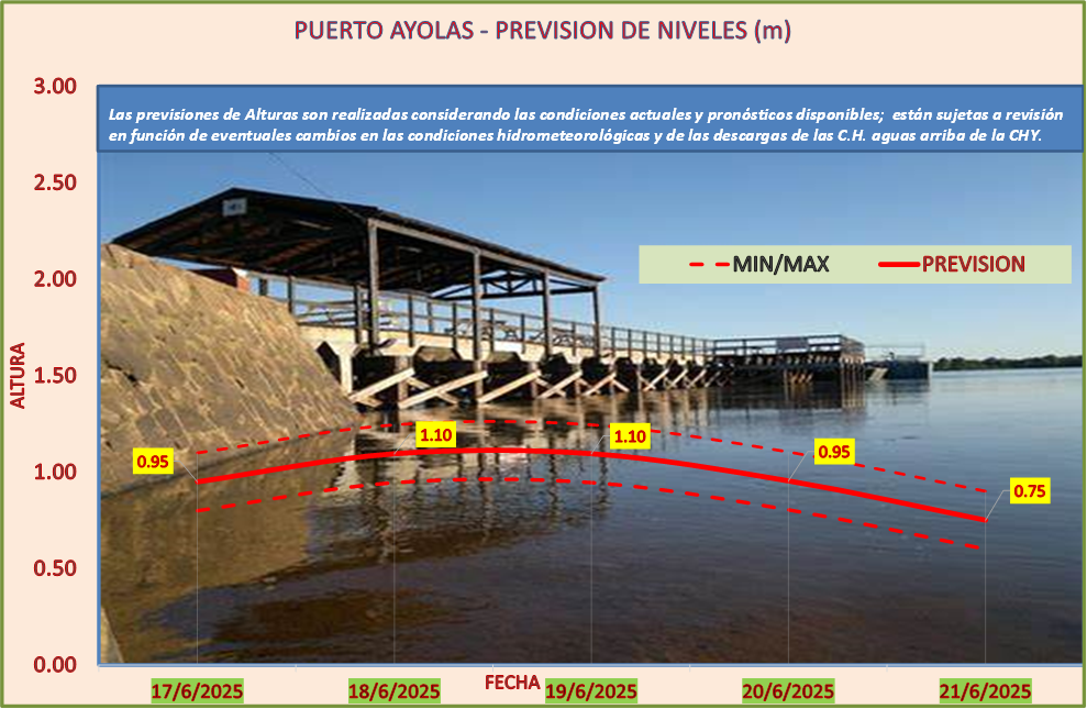 Las previsiones de Alturas son realizadas considerando las condiciones actuales y pronósticos disponibles y están sujetas a revisión en función de eventuales cambios en las condiciones hidrometeorológicas y de las descargas de las C.H. aguas arriba de la CHY.