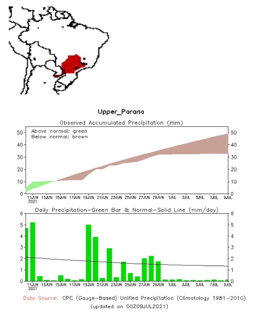 Los embalses de acumulación del Brasil que se ubican en la cuenca alta del río Paraná, aguas arriba de la Central Hidroeléctrica de Yacyretá, se encuentran con volúmenes útiles y niveles muy por debajo de lo normal debido a las escasas precipitaciones registradas.