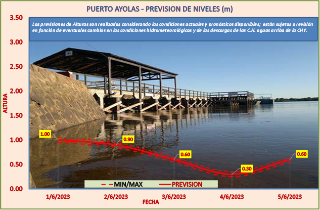 Las previsiones de Alturas son realizadas considerando las condiciones actuales y pronósticos disponibles y están sujetas a revisión en función de eventuales cambios en las condiciones hidrometeorológicas y de las descargas de las C.H. aguas arriba de la CHY.