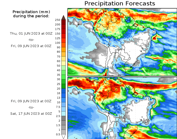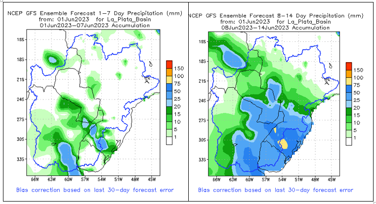 El pronóstico Hidrometeorológico del Centro Climático de referencia indica una tendencia semanal de poca significancia hidrológica en la cuenca de interés para la CHY con dispersión geográfica según sea la fuente consultada. (Ver gráfico Nro. 1).