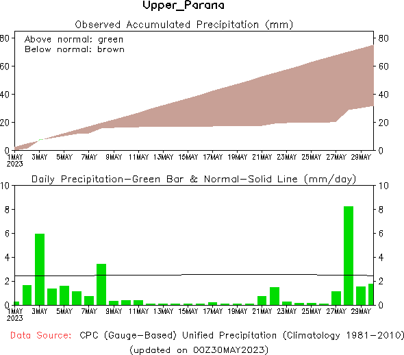 En el Puerto de Ayolas se registró una altura de 0.99 m a las 02:00 hs. mientras que se espera que los niveles acompañen la tendencia de los caudales.
