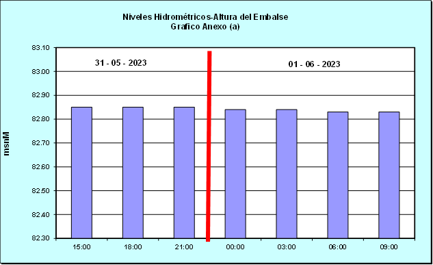 Nivel de Ayer (06:00 hs) = 82.79 mSNM Nivel de Hoy (06:00 hs) = 82.76 mSNM