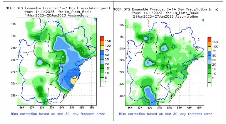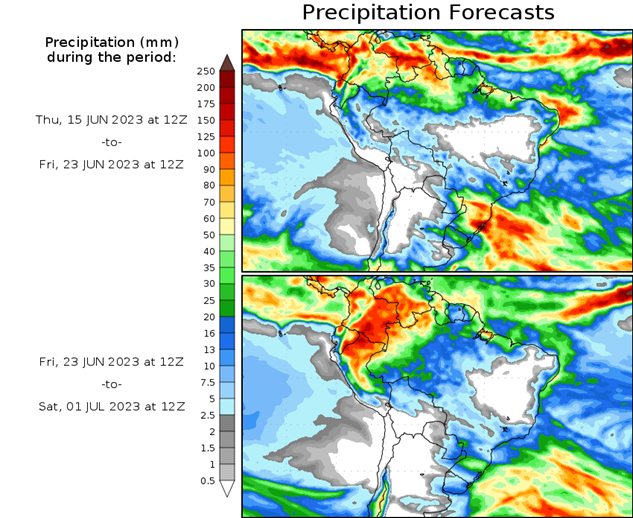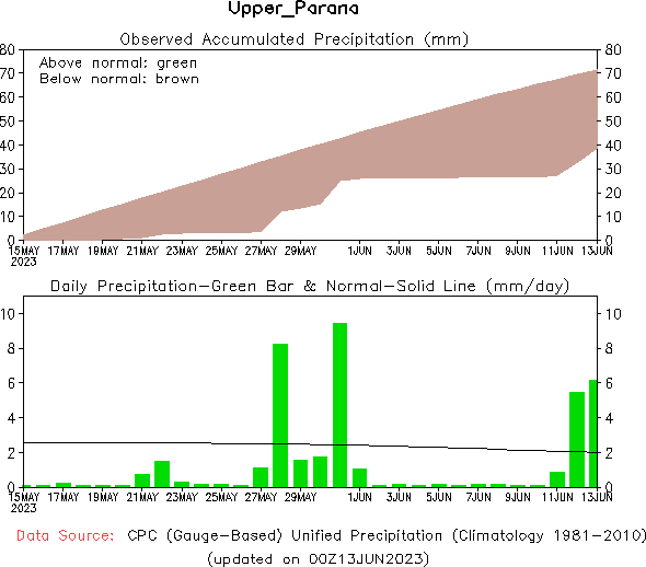 El pronóstico Hidrometeorológico del Centro Climático de referencia indica una tendencia semanal de poca significancia hidrológica en la cuenca de interés para la CHY con dispersión geográfica según sea la fuente consultada. (Ver gráfico Nro. 1).