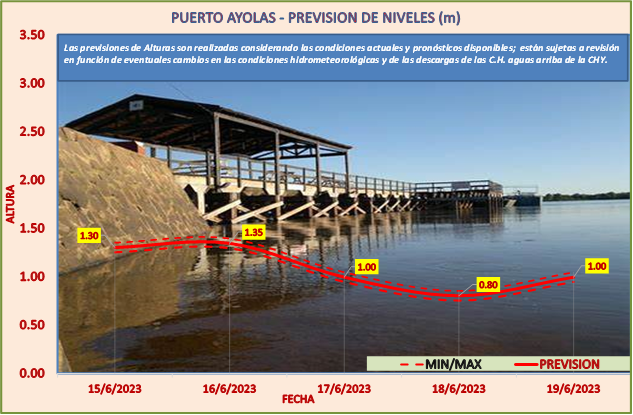 Las previsiones de Alturas son realizadas considerando las condiciones actuales y pronósticos disponibles y están sujetas a revisión en función de eventuales cambios en las condiciones hidrometeorológicas y de las descargas de las C.H. aguas arriba de la CHY.