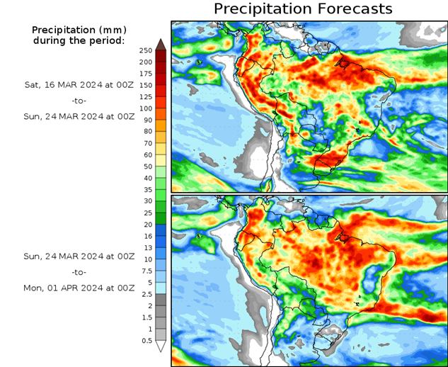 El pronóstico Hidrometeorológico del Centro Climático de referencia indica una tendencia semanal de poca significancia hidrológica en la cuenca de interés para la CHY con dispersión geográfica según sea la fuente consultada. (Ver gráfico Nro. 1).