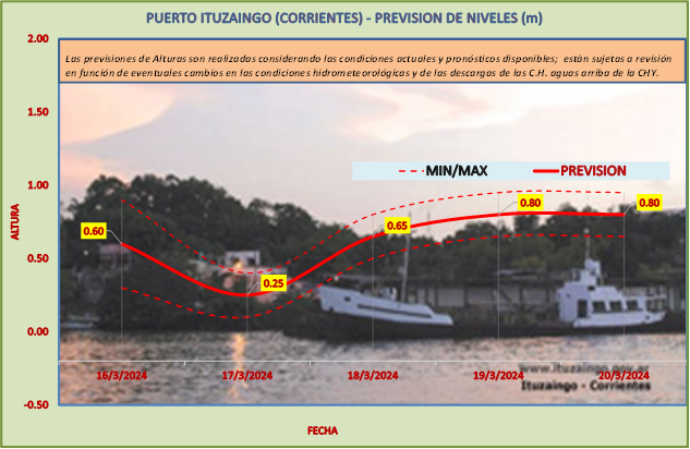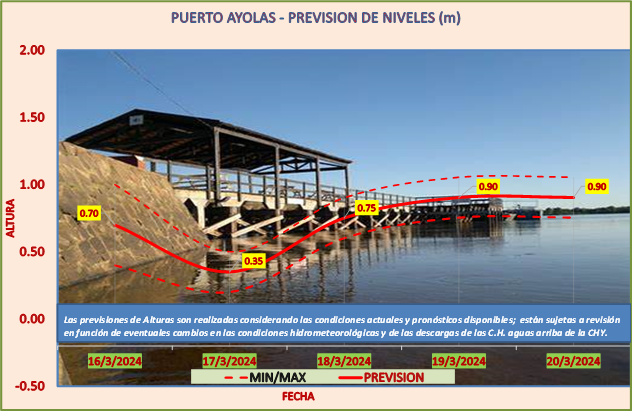 Las previsiones de Alturas son realizadas considerando las condiciones actuales y pronósticos disponibles y están sujetas a revisión en función de eventuales cambios en las condiciones hidrometeorológicas y de las descargas de las C.H. aguas arriba de la CHY.