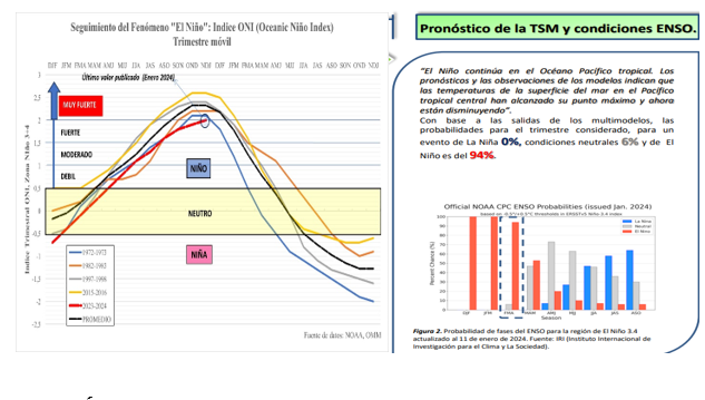 La evolución de índices climáticos publicados por organismos especializados de referencia, vinculados con la previsión del fenómeno caracterizado como “El Niño”, hace prever con un grado de probabilidad alto, que durante el periodo enero y marzo 2024 podrían verificarse eventos hidrológicos asociados a situaciones de aguas altas.