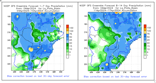 El pronóstico Hidrometeorológico del Centro Climático de referencia indica una tendencia semanal de leve significancia hidrológica en la cuenca de interés para la CHY con dispersión geográfica según sea la fuente consultada. (Ver gráfico Nro. 1).