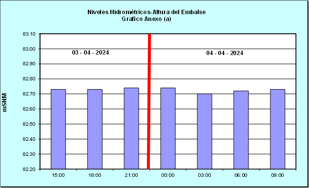 Nivel de Ayer (06:00 hs) = 82.76 mSNM Nivel de Hoy (06:00 hs) = 82.76 mSNM