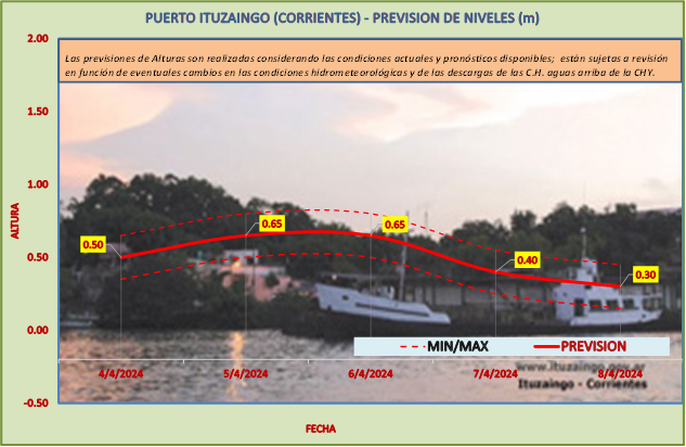 Las previsiones de Alturas son realizadas considerando las condiciones actuales y pronósticos disponibles y están sujetas a revisión en función de eventuales cambios en las condiciones hidrometeorológicas y de las descargas de las C.H. aguas arriba de la CHY.