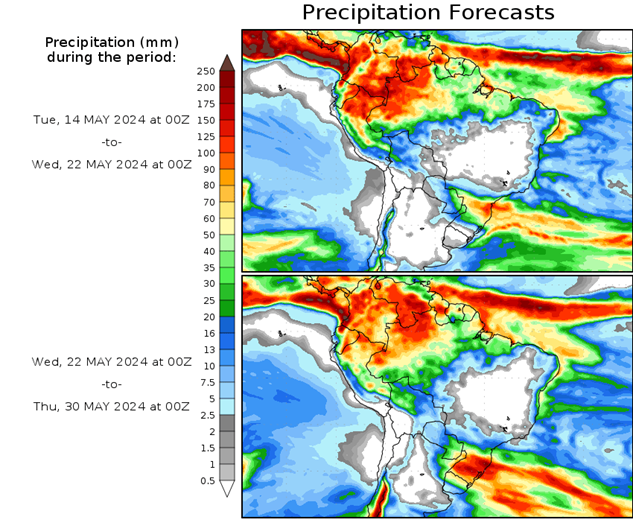 El pronóstico Hidrometeorológico del Centro Climático de referencia indica una tendencia semanal de leve significancia hidrológica en la cuenca de interés para la CHY con dispersión geográfica según sea la fuente consultada. (Ver gráfico Nro. 1).