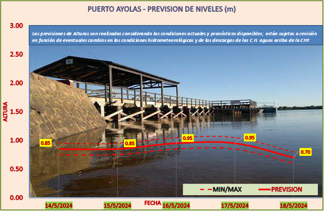 Las previsiones de Alturas son realizadas considerando las condiciones actuales y pronósticos disponibles y están sujetas a revisión en función de eventuales cambios en las condiciones hidrometeorológicas y de las descargas de las C.H. aguas arriba de la CHY.