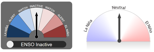 El Niño continúa y está cerca de su fin. Los modelos climáticos indican que se espera que las temperaturas de la superficie del mar en el Pacífico tropical central vuelvan a ser neutras en ENSO más adelante.