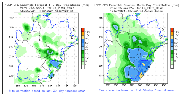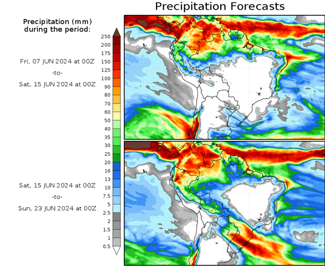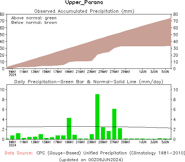 El pronóstico Hidrometeorológico del Centro Climático de referencia indica una tendencia semanal de poca significancia hidrológica en la cuenca de interés para la CHY con dispersión geográfica según sea la fuente consultada. (Ver gráfico Nro. 1).