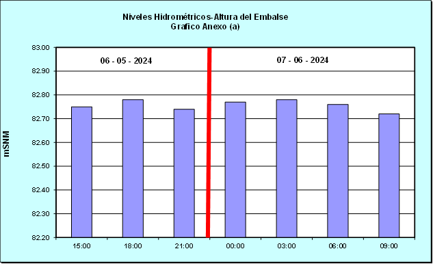 Nivel de Ayer (06:00 hs) = 82.78 mSNM Nivel de Hoy (06:00 hs) = 82.76 mSNM