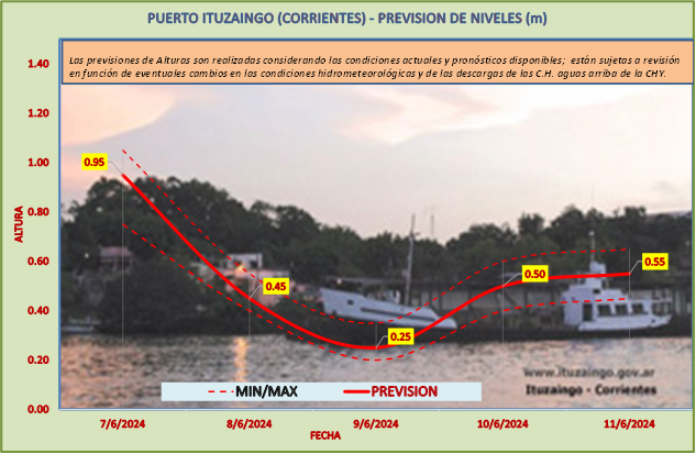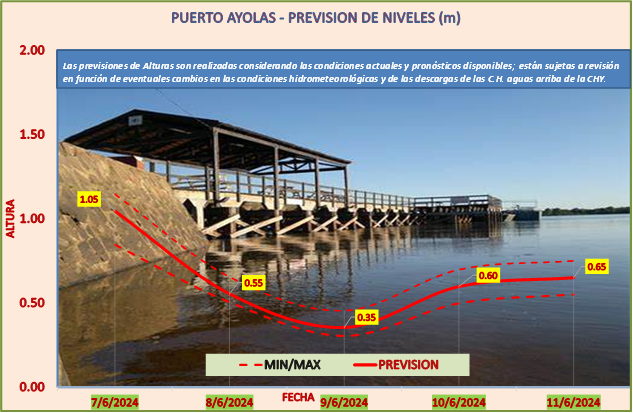 Las previsiones de Alturas son realizadas considerando las condiciones actuales y pronósticos disponibles y están sujetas a revisión en función de eventuales cambios en las condiciones hidrometeorológicas y de las descargas de las C.H. aguas arriba de la CHY.