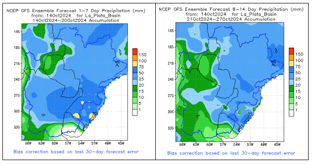 El pronóstico Hidrometeorológico del Centro Climático de referencia indica una tendencia semanal de leve significancia hidrológica en la cuenca de interés para la CHY con dispersión geográfica según sea la fuente consultada. (Ver gráfico Nro. 1).