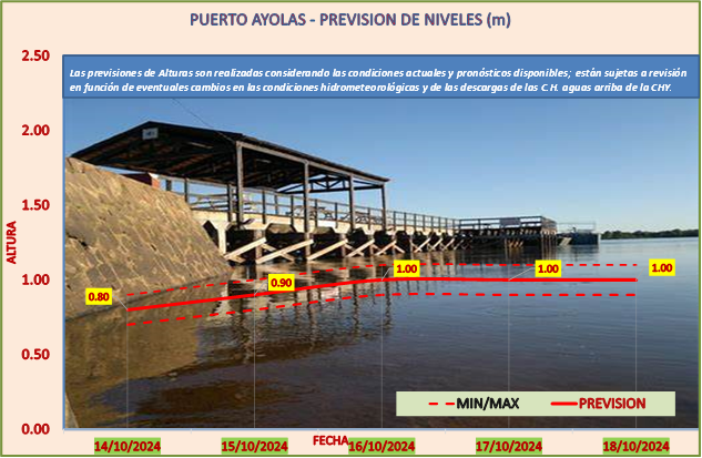 Las previsiones de Alturas son realizadas considerando las condiciones actuales y pronósticos disponibles y están sujetas a revisión en función de eventuales cambios en las condiciones hidrometeorológicas y de las descargas de las C.H. aguas arriba de la CHY.