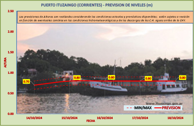En el Puerto de Ayolas se registró una altura de 0.55 m, mientras que se espera que los niveles acompañen la tendencia de los caudales.