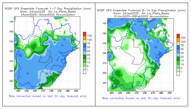El pronóstico Hidrometeorológico del Centro Climático de referencia indica una tendencia semanal de poca significancia hidrológica en la cuenca de interés para la CHY con dispersión geográfica según sea la fuente consultada. (Ver gráfico Nro. 1).