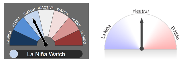 El fenómeno de El Niño-Oscilación del Sur (ENSO) es neutro, y tanto las temperaturas superficiales del mar (TSM) en el Océano Pacífico ecuatorial central como los patrones atmosféricos se encuentran en niveles neutros respecto de El Niño. Los índices atmosféricos, como los relacionados con los patrones de presión superficial, nubes y vientos alisios, son en general consistentes con un estado neutro respecto de El Niño. Aunque algunos han mostrado señales similares a las de La Niña durante las últimas semanas, estas señales no han sido consistentes.