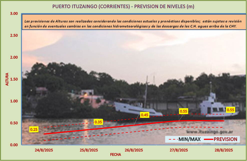 Las previsiones de Alturas son realizadas considerando las condiciones actuales y pronósticos disponibles y están sujetas a revisión en función de eventuales cambios en las condiciones hidrometeorológicas y de las descargas de las C.H. aguas arriba de la CHY.