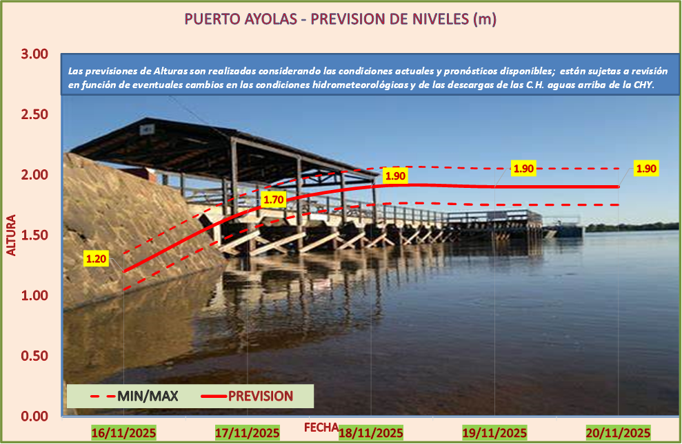 Las previsiones de Alturas son realizadas considerando las condiciones actuales y pronósticos disponibles y están sujetas a revisión en función de eventuales cambios en las condiciones hidrometeorológicas y de las descargas de las C.H. aguas arriba de la CHY.
