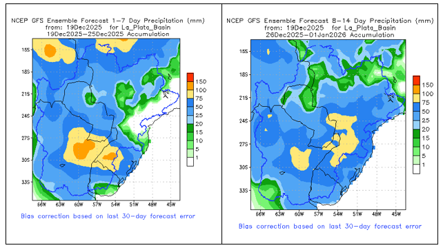 El pronóstico Hidrometeorológico del Centro Climático de referencia indica una tendencia semanal de poca significancia hidrológica en la cuenca de interés para la CHY con dispersión geográfica según sea la fuente consultada. (Ver gráfico Nro. 1).