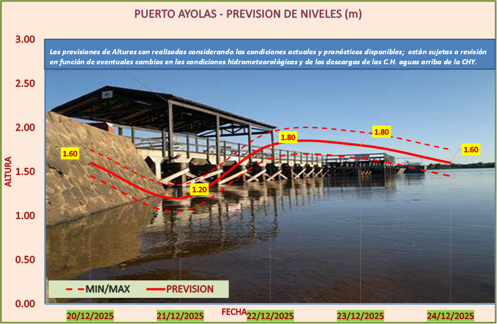Las previsiones de Alturas son realizadas considerando las condiciones actuales y pronósticos disponibles y están sujetas a revisión en función de eventuales cambios en las condiciones hidrometeorológicas y de las descargas de las C.H. aguas arriba de la CHY.