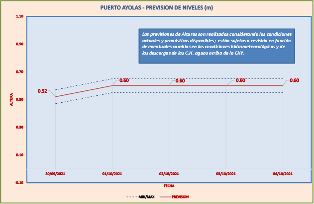 Las previsiones de Alturas son realizadas considerando las condiciones actuales y pronósticos disponibles y están sujetas a revisión en función de eventuales cambios en las condiciones hidrometeorológicas y de las descargas de las C.H. aguas arriba de la CHY.