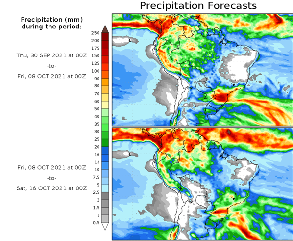 El pronóstico Hidrometeorológico del Centro Climático de referencia indica una tendencia semanal de poca significancia hidrológica en la cuenca de interés para la CHY con dispersión geográfica según sea la fuente consultada. (Ver gráfico Nro. 1).