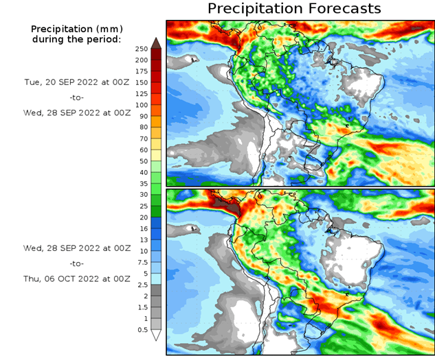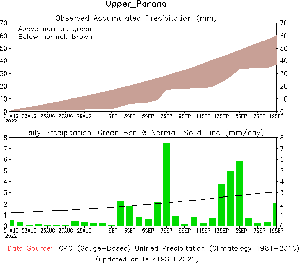 El pronóstico Hidrometeorológico del Centro Climático de referencia indica una tendencia semanal de poca significancia hidrológica en la cuenca de interés para la CHY con dispersión geográfica según sea la fuente consultada. (Ver gráfico Nro. 1).