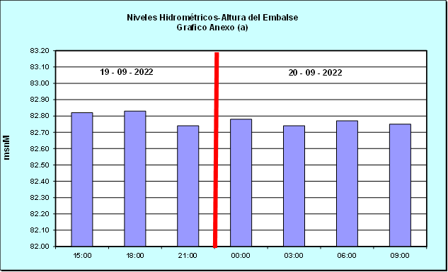 Nivel de Ayer (06:00 hs) = 82.84 mSNM Nivel de Hoy (06:00 hs) = 82.77 Msnm