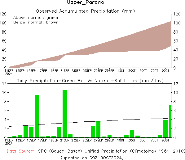 El pronóstico Hidrometeorológico del Centro Climático de referencia indica una tendencia semanal de leve significancia hidrológica en la cuenca de interés para la CHY con dispersión geográfica según sea la fuente consultada. (Ver gráfico Nro. 1).