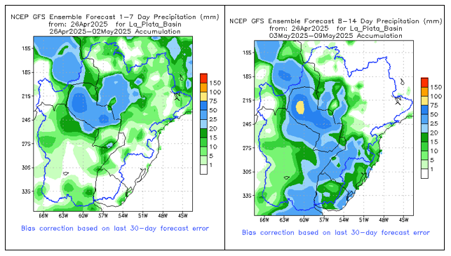 El pronóstico Hidrometeorológico del Centro Climático de referencia indica una tendencia semanal de poca significancia hidrológica en la cuenca de interés para la CHY con dispersión geográfica según sea la fuente consultada. (Ver gráfico Nro. 1).