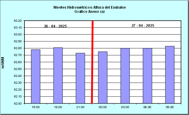 Nivel de Ayer (06:00 hs) = 82.74 mSNM Nivel de Hoy (06:00 hs) = 82.77 Msnm