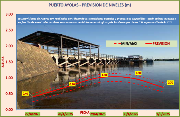 Las previsiones de Alturas son realizadas considerando las condiciones actuales y pronósticos disponibles y están sujetas a revisión en función de eventuales cambios en las condiciones hidrometeorológicas y de las descargas de las C.H. aguas arriba de la CHY.