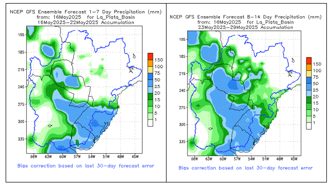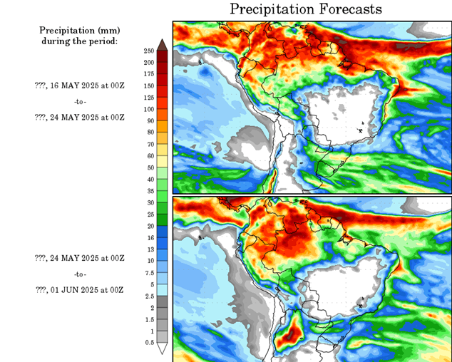 El fenómeno de El Niño-Oscilación del Sur (ENOS) es neutro. El último valor de Niño3.4 para la semana que finalizó el 4 de mayo fue de -0,03 °C. Los valores neutros de ENOS se encuentran entre -0,8 °C y +0,8 °C.