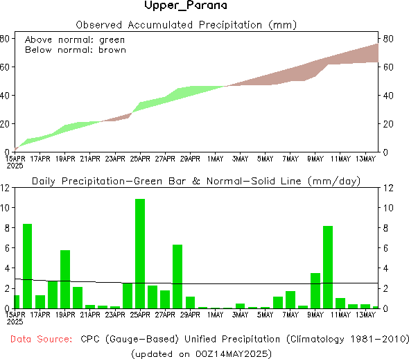 Para el trimestre considerado, se prevén valores infeiores a la normal en gran parte de la región oriental, mientras que en el resto del territorio nacional, se esperan condiciones normales.