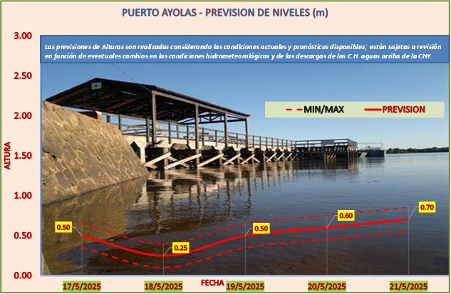 Las previsiones de Alturas son realizadas considerando las condiciones actuales y pronósticos disponibles y están sujetas a revisión en función de eventuales cambios en las condiciones hidrometeorológicas y de las descargas de las C.H. aguas arriba de la CHY.