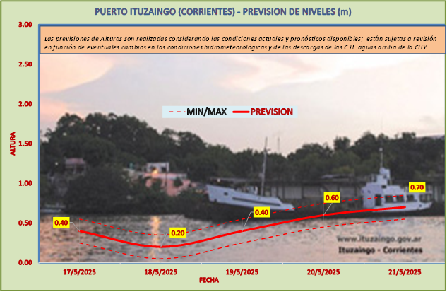 En el Puerto de Ayolas se registró una altura de 0.50 m, mientras que se espera que los niveles acompañen la tendencia de los caudales.