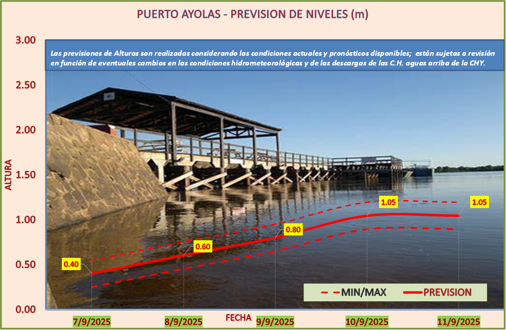 Las previsiones de Alturas son realizadas considerando las condiciones actuales y pronósticos disponibles y están sujetas a revisión en función de eventuales cambios en las condiciones hidrometeorológicas y de las descargas de las C.H. aguas arriba de la CHY.