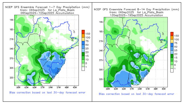 El pronóstico Hidrometeorológico del Centro Climático de referencia indica una tendencia semanal de poca significancia hidrológica en la cuenca de interés para la CHY con dispersión geográfica según sea la fuente consultada. (Ver gráfico Nro. 1).
